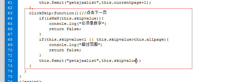 然后就是方法,我们页数和按钮的点击都是发起请求,携带的参数就是当前点击的页数,