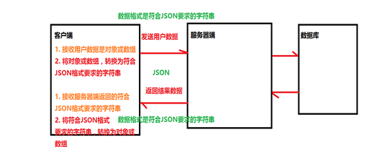 转换为JSON字符串:JSON.stringify(字符串) ---- (客户端=>服务器),
