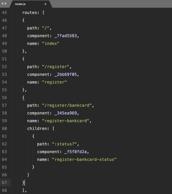 那么,Nuxt.js 自动生成的路由配置如下: