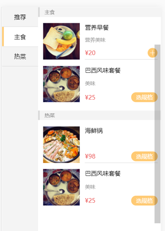 近日在做一个vue项目的餐饮模块,小编需要实现一个菜单列表显示的功能(如图所示:左边为菜单类别,右边显示相对应的菜品)