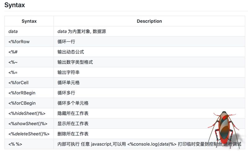 如果因为众(ni)所(dong)周(de)知的原因打不开github,没有关系,它的语法很简单,都是一些对Excel模板格式的定义: