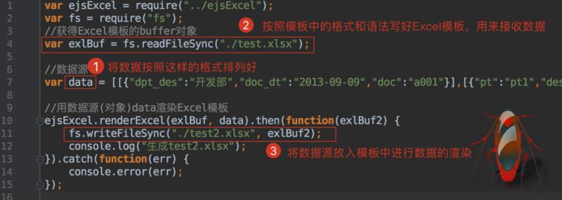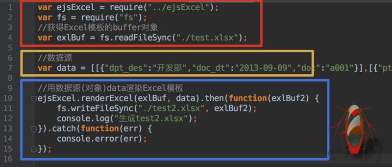 测试案例很简单,当你看懂测试案例是如何运作的之后剩下的就没有问题了,没看懂的也没关系,以我们上面运行的testExcel.js为例:
