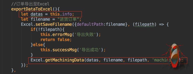 在Vue中,我做了一个导出按钮,当点击这个button时,触发方法,去获取我们data{}中的数据,获取到数据后作为参数,传入我们封装好的数据源方法中