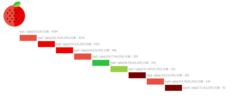 我们会得到这样一个数组 [{rgba: '21,12,45,0', weight: 12}, {...}]来记录色值和出现次数,