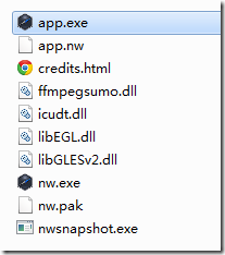因为nw文件的运行需要node-webkit环境的支持,所以我们还需要把app.nw这个文件跟node-webkit的环境文件一起打包成一个可执行文件。