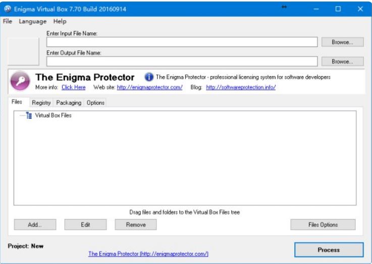 打开 Enigma Virtual Box 程序(enigmavb.exe),界面应该是这样的: