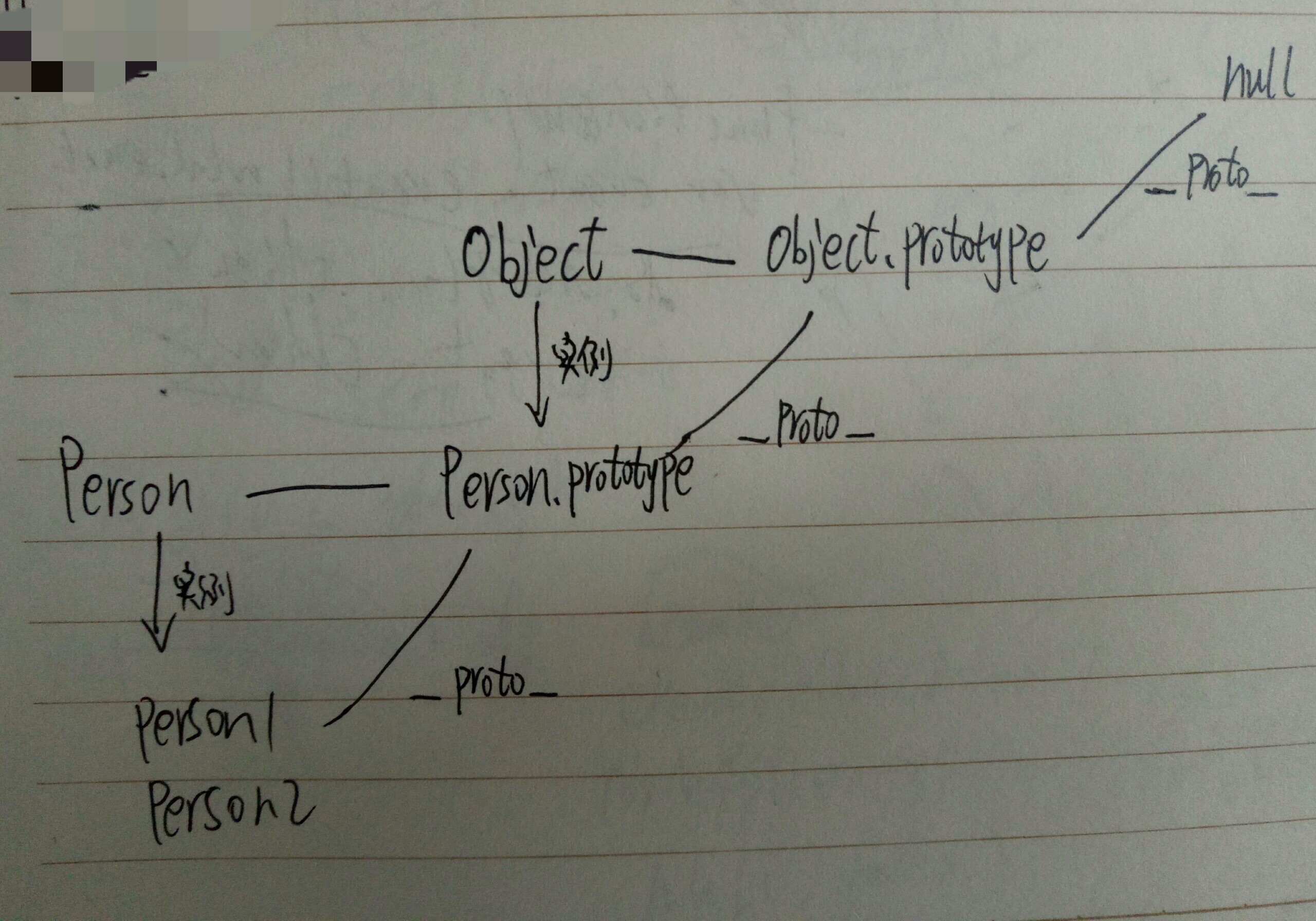 而Object.prototype的_proto_指针指向null来结束原型链。以Person构造函数为例,看看完整的原型链图