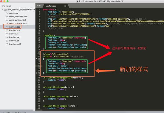 将以下代码加进去,注意: el-icon-third 是你之前设置的icon前缀,第二个 el-icon-third前边有空格的