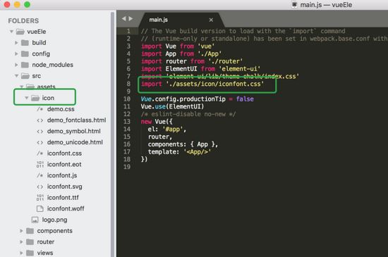 2.上边设置好以后,打开vue项目,我是在src-assets下创建了icon文件夹,将所有的文件复制了过来