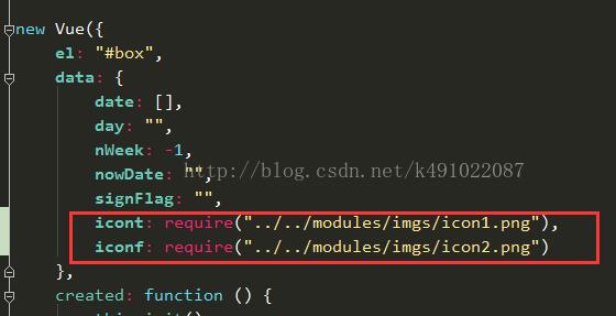 因此在data中必须用require加载,否则会当成字符串来处理。