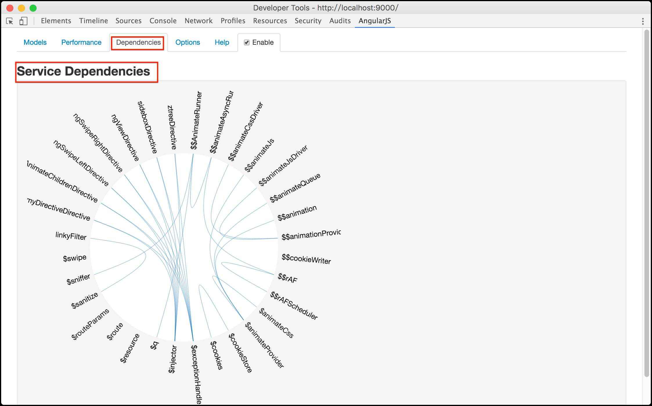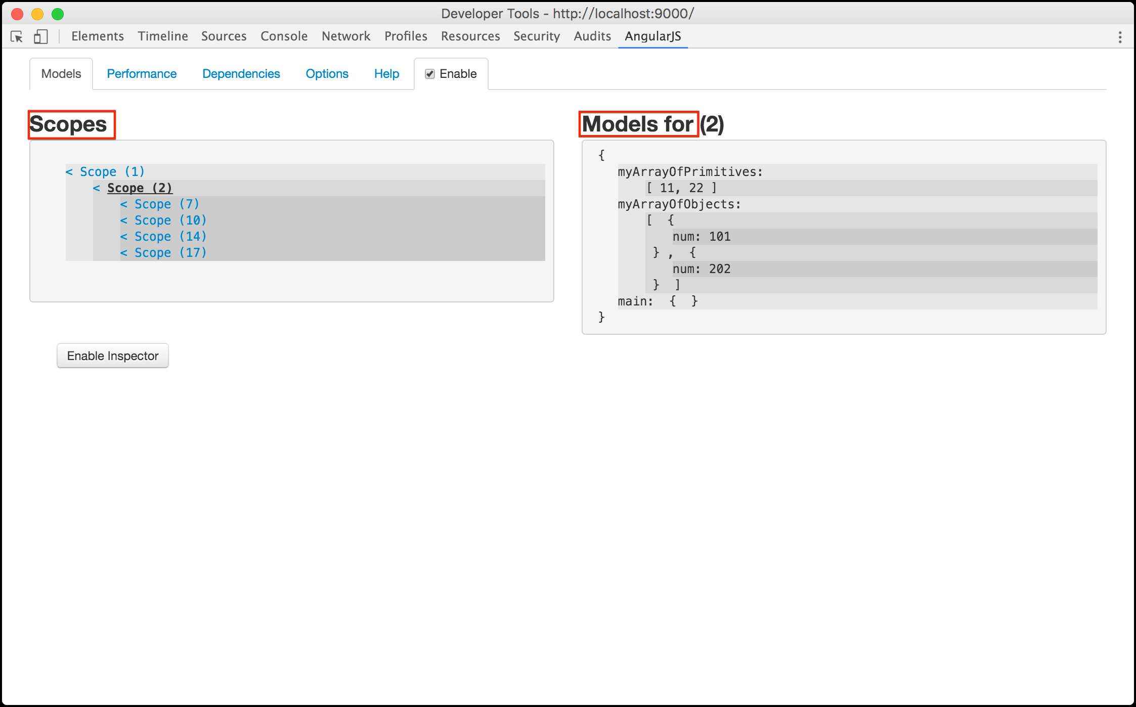 会发现控制台中多了一个AngularJS的页面,勾选“Enable”,该控件就可以使用了: