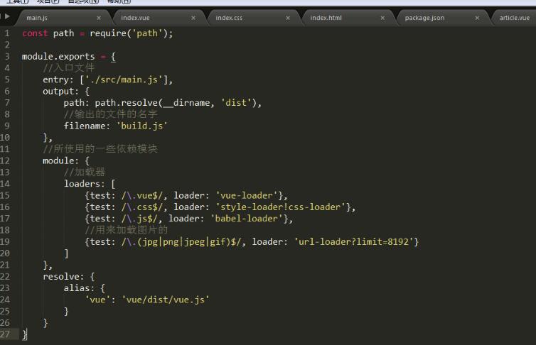 也就是说, 打包之后这个图片文件找不到了, 那么原因出在哪里呢? 先来看一下我在webpack.config.js文件中的配置: