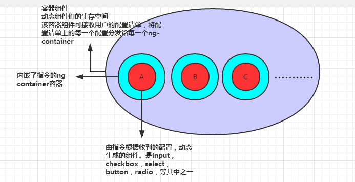 configs是用户的配置数据,自定义指令寄宿在ng-container中,根据config渲染出各自的动态组件,而ng-container是透明的。