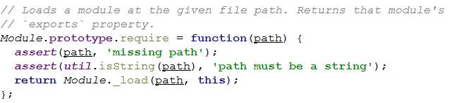 但是很明显,一般应用不但需要引用matives module,还要引用第三方模块,让我们看一下module.js中的Module.prototype._require()函数中。