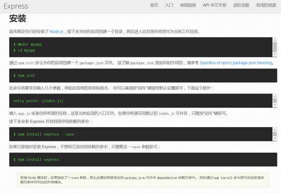 因为微信认证需要拥有一个自己的服务器 ,所以这里我们就需要用到express搭建一个简单的服务器,用来完成微信的token认证和生成signature(签名),搭建的过程也很简单,参照express中文文档,下面就贴一下官网的步骤:
