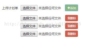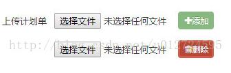 希望实现的功能是:当点击“添加”按钮时,在上传计划单的下面再增加一条上传计划单的文件上传表单,且新增的文件上传表单后面有一个“删除”按钮,当点击“删除”按钮时,可将刚刚新增的文件上传表单删除掉。效果如下图所示: