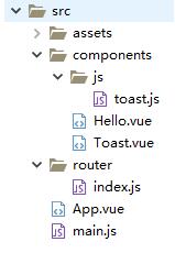 这次的封装主要涉及的文件是Toast.vue toast.js Hello.vue,主要思路如下: