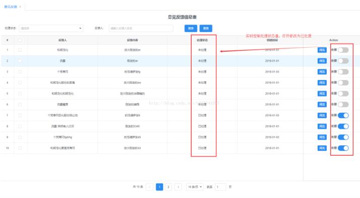 即是打开处理switch开关,对应修改为已处理状态,关闭switch开关,修改为未处理状态。