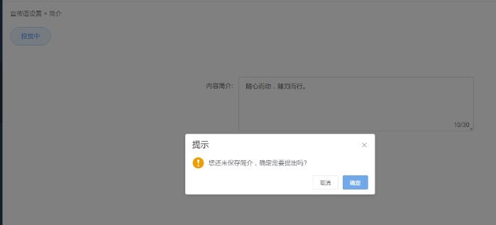 this.$confirm('您还未保存简介,确定需要提出吗?', '提示', {