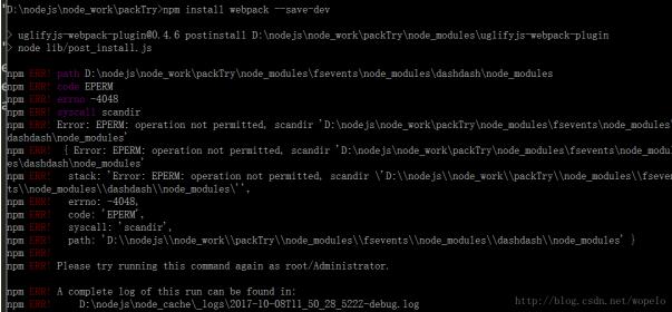 在用npm安装模块时,虽然我是通过管理员身份执行的,但依然会报有关权限的错