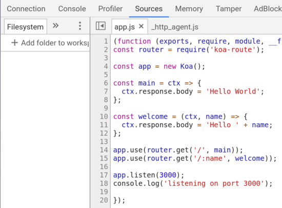 $ node --inspect app.js
