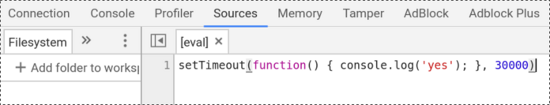 代码放在 setTimeout 里面,总是不太方便。那些运行时间较短的脚本,可能根本来不及打开调试工具。这时就要使用下面的方法。