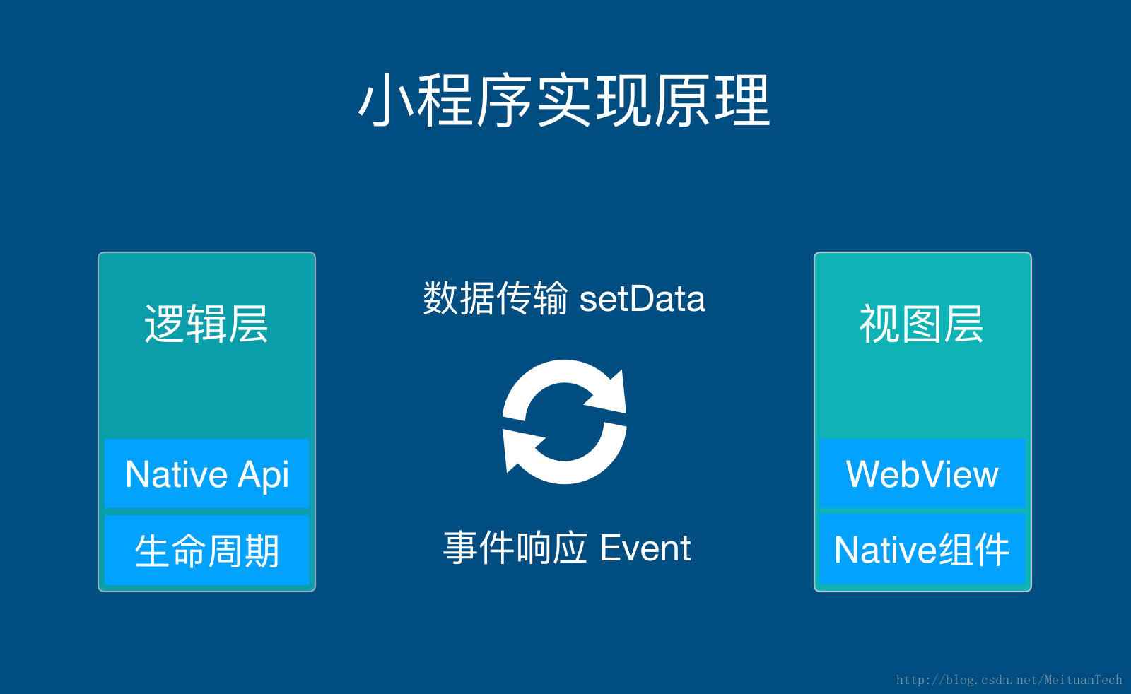 生命周期关联:生命周期和数据同步是 mpvue 框架的灵魂,Vue.js 和小程序的数据彼此隔离,各自有不同的更新机制。mpvue 从生命周期和事件回调函数切入,在 Vue.js 触发数据更新时实现数据同步。小程序通过视图层呈现给用户、通过事件响应用户交互,Vue.js 在后台维护着数据变更和逻辑。可以看到,数据更新发端于小程序,处理自 Vue.js,Vue.js 数据变更后再同步到小程序。为实现数据同步,mpvue 修改了 Vue.js runtime 实现,在 Vue.js 的生命周期中增加了更新小程序数据的逻辑。