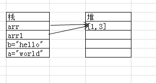 var a="hello"; var b=a; a="world"; alert(a);//world alert(b);//hello var arr=[1,3]; arr1=arr; arr.push(5); alert(arr)//1,3,5 alert(arr1);//1,3,5 arr=[7,8]; alert(arr);//7,8 alert(arr1);//1,3,5