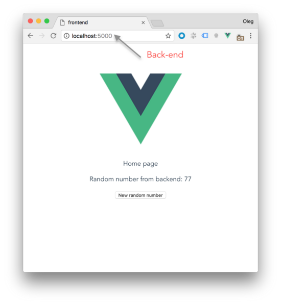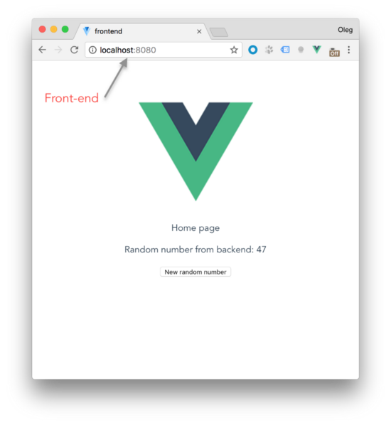 现在在主页上,你应该看到前端显示我们产生的随机数。让我们把它连接到后端。