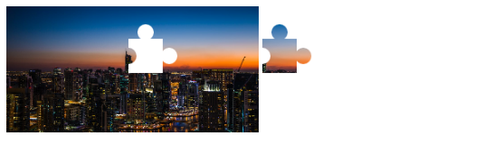 现在一个基本的拼图形状有了,我们调整#block的大小,并将裁剪出来的滑块放入#block中: