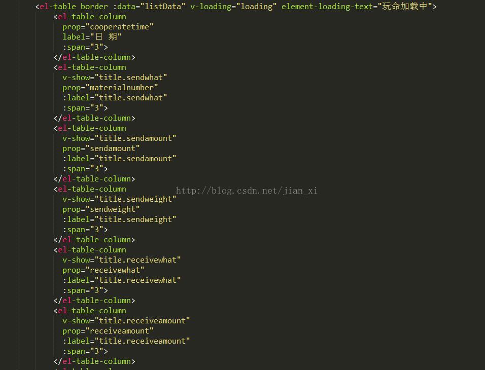 由于el-table-column会生成多行标签元素,根据v-show是不支持template语法的,推断出v-show不能显示隐藏多个元素?不知是否