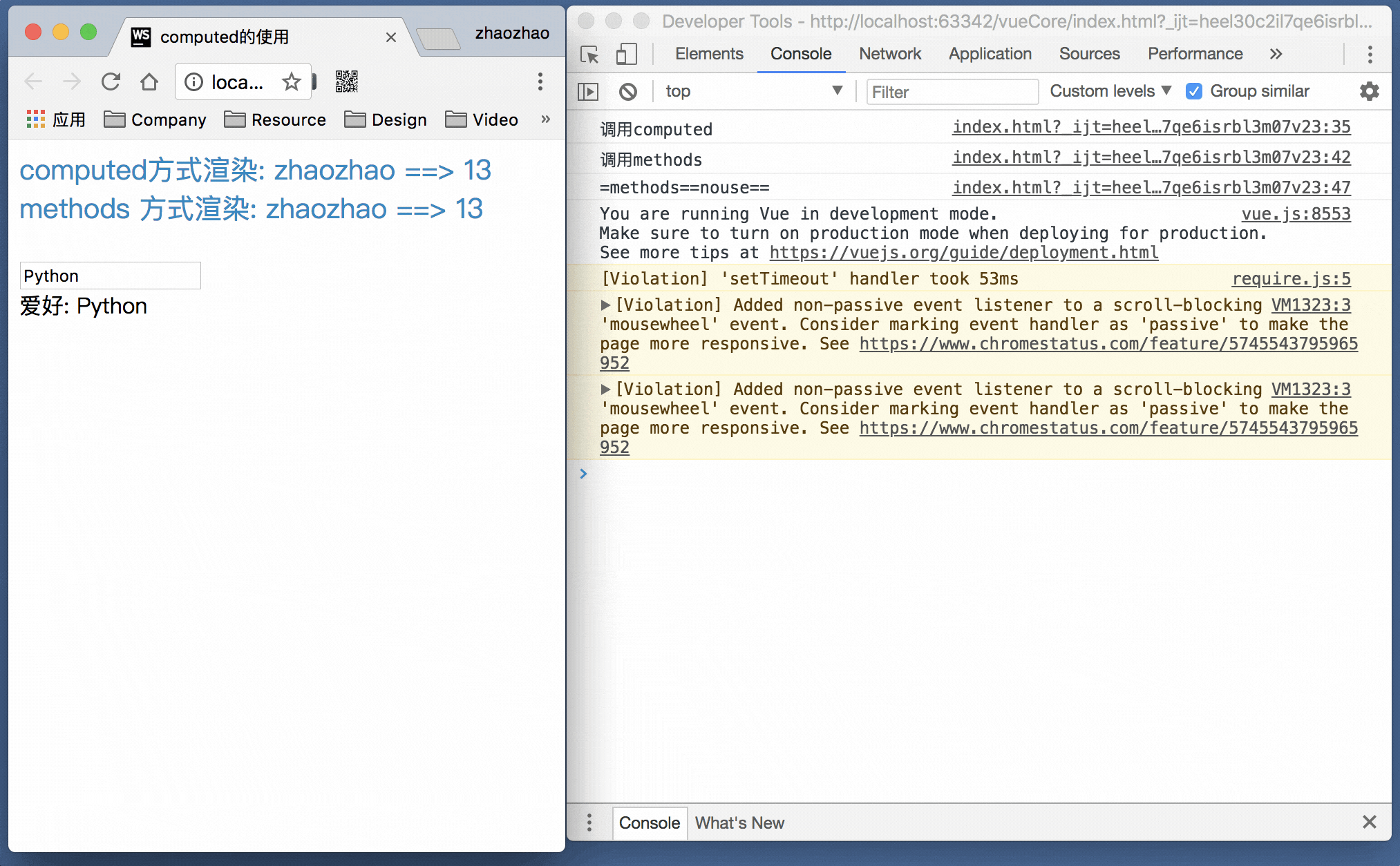 拼接展示数据的任务, 也可以用methods完成, 但当页面的数据变化时, methods中的方法会被重新调用(产生不必要的性能消耗), 而methods内的方法只有和自身有关的数据变化时才会被调用