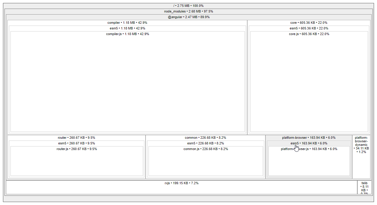 执行aot会去掉一些程序执行不需要的代码, 例如angular的compiler这时就不在build输出的文件里了(可以使用source-map-explorer查看).