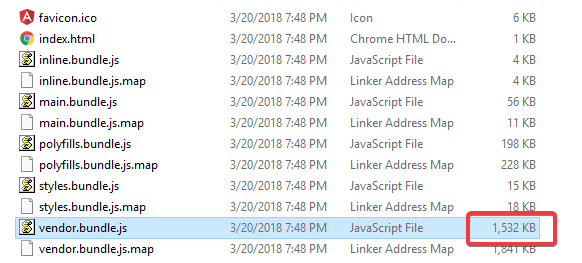 因为ng build是开发时的build, 所以没有做任何优化, 文件挺大的.