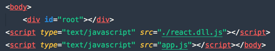 此时react.dll.js和main.js被自动引入到页面中,并且dll文件在main.js之前加载
