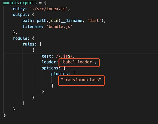 如果我们的插件名字想叫transform-class,需要在webpack配置中做如下配置: