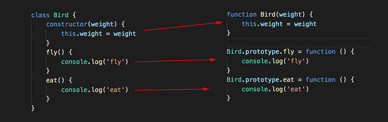 其实,类还涉及到继承,思路也不复杂,就是判断AST中没有 superClass 属性,如果有的话,我们需要多添加一行代码 Bird.prototype = Object.create(Parent) ,当然别忘了处理 super 关键字。