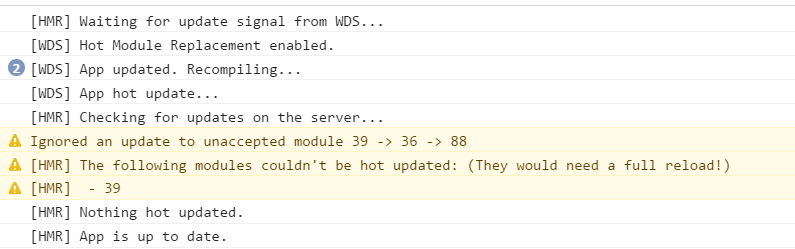 日志显示没有东西被热更新。而且这个39,36代表的是模块Id,看起来很不直观,这里可以通过一个插件使其更符合人意