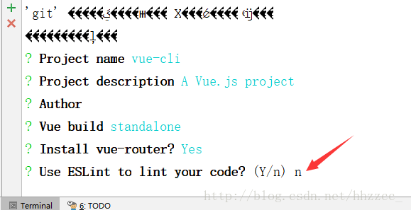 首先在大前提vue-cli已经安装好的情况下,并且cnpm install后(官网使用的是npm,但这里推荐用cnpm比npm快而且npm有时候会有出现卡住的现象),这里有个小提醒就是关于是否开启eslint,这个是对你写的代码进行规范化的一个工具,对于刚接触的新手们建议关闭,不然代码写的不符合它的规范你的编译器会一直报错,如下图