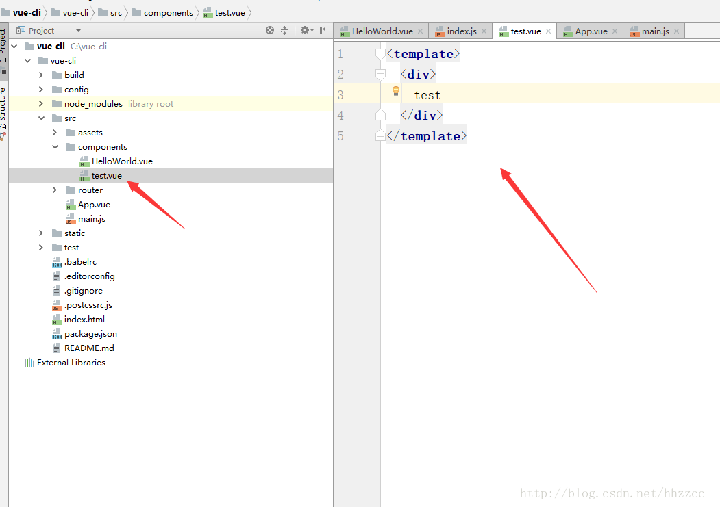 vue脚手架默认的路由嵌套就是所有页面都嵌套在App.vue页面下,现在教大家自由嵌套自己的页面现在我把test页面嵌套到HelloWorld.vue页面下
