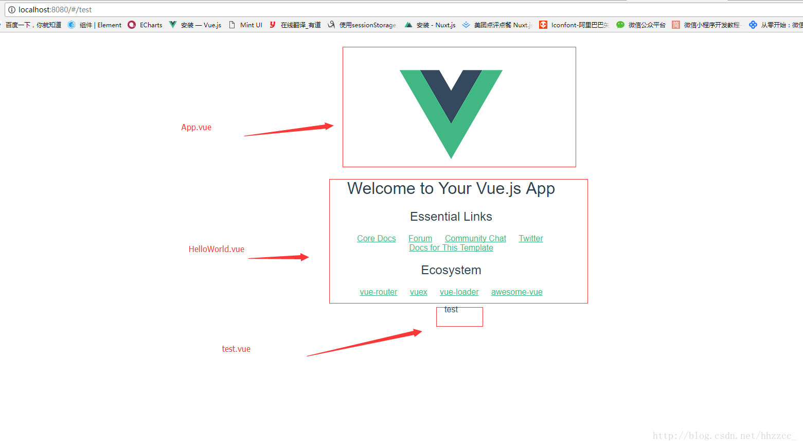 输入url,一个APP.vue中嵌套test.vue的页面就呈现了