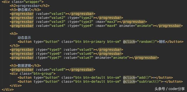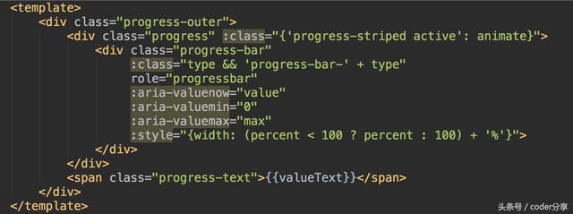 progressbar组件表现为.vue文件的形式,其中template部分内容如下