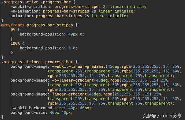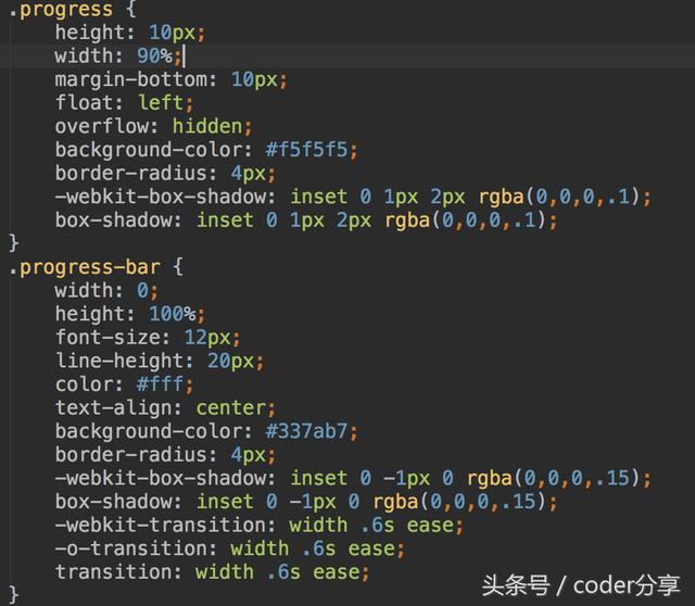 其中style的部分内容比较多,首先看下基本的progressbar的css属性,包括progress和progress-bar的部分