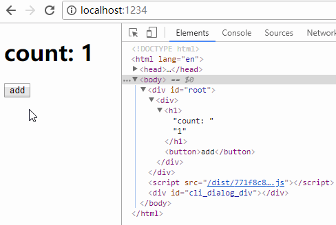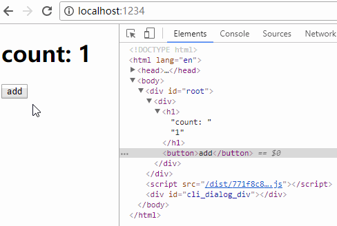 现在我们实现了diff方法,我们尝试渲染上一篇文章中定义的Counter组件,来感受一下有无diff方法的不同。