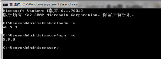 使用命令行cmd 打开dos 黑窗口,运行 node -v 和 npm –v,出现版号说明安装成功