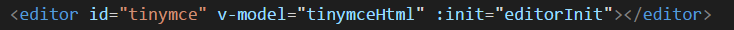 <editor id='tinymce' v-model='tinymceHtml' :init='init'></editor>
