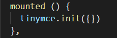 这里的 init 是 tinymce 初始化配置项,后面会讲到一些关键的 api,完整 api 可以参考官方文档