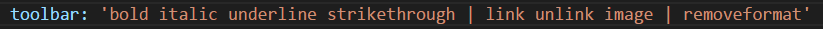 'bold italic underline strikethrough | fontsizeselect | forecolor backcolor | alignleft aligncenter alignright alignjustify | bullist numlist | outdent indent blockquote | undo redo | link unlink image code | removeformat',