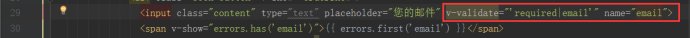 (2)v-validate="'required | email'"有两个验证,一个是为空验证,一个是输入错误验证,你想要多少种验证就在这里写。比如你要限制字数,那就加多个max,即v-validate="'required | email | max:9'"。
