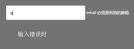 (3)name属性一定要写,span标签是展示错误提示的。其实此时已经基本完成表单验证了,只是出现的提示是插件提供的默认提示,比如email的错误提示如下图所示,这肯定不是我们想要的,我们需要定义一下。